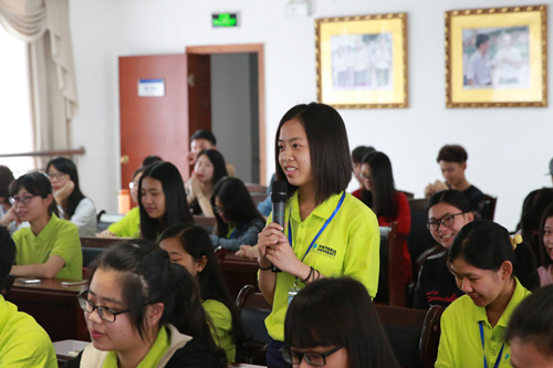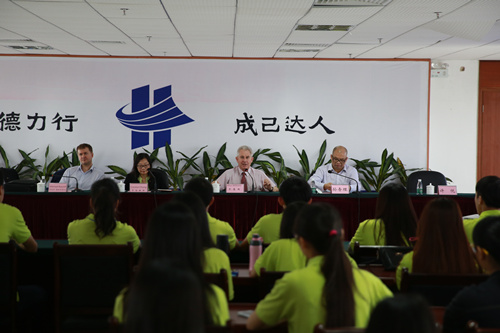 不少学生在来宾的鼓励下,积极用英语发言——“请问我们重点是在学英语还是专业知识?”“在(英语)非母语环境下,我们要怎样提高学习效率?”“很多同学感觉语言的学习压力,上课非常被动,要怎么转变?”台下的学生纷纷提出问题,大家尤其关心如何在现有的条件下去克服语言难关。