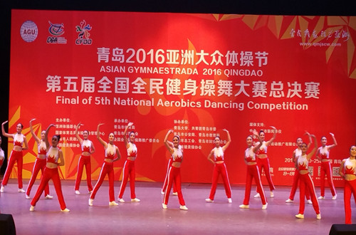 (通讯员文东玲 李丽君)9月20日至25日,在山东青岛举办的2016亚洲大众体操节暨第五届全国全民健身操舞总决赛中,来自亚洲及欧洲等7个国家和地区代表团近200多名运动员,以及来自全国各省市自治区、直辖区的25个代表团,8000余名全民健身操舞活动参赛选手参加了有氧健身操舞、街舞、时尚健身操课程、民族健身操、广场健身操舞等五大类、80多个小项比赛的角逐。