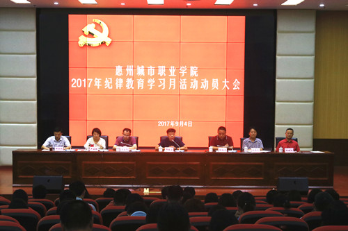 (宣传部 邓韵) 9月4日下午,我院在明德书院报告厅召开2017年纪律教育学习月活动动员大会。院党委书记、校长邓庆宁同志作动员讲话,院党委副书记、纪委书记田儒清同志对纪律教育学习月活动进行了部署。学院全体领导班子成员、全体党员、中层干部参加了会议,会议由田儒清同志主持。