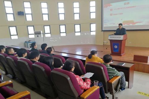 信息学院党支部书记邓波涛同志采取专题讲座和现场互动交流心得的形式,结合党的十九大报告主题、核心、新时代、新辉煌、新矛盾、新部署、新思想、新使命、新征程、新要求等关键词,对党的十九大召开的重要意义、习近平新时代中国特色社会主义思想内涵和党的十九大对新党章的十大修改等方面作了详实透彻的阐释,信息学院全体党员认真参与了学习讨论,进一步营造了十九大精神学贯浓厚氛围,促使十九大精神在每名党员同志中落地生根。
