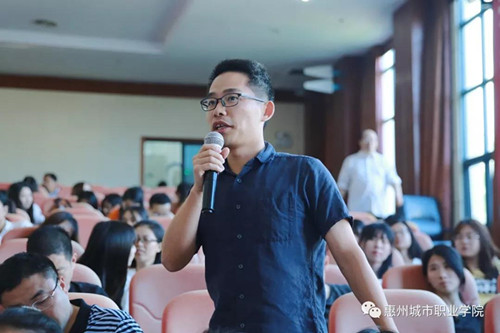 惠州市政协副主席王细波,市直有关单位、城区有关单位领导,机关单位代表、企业代表、青年商会代表以及game365备用网址师生代表500余人参加了此次报告会。报告会由game365备用网址党委书记、校长邓庆宁主持。