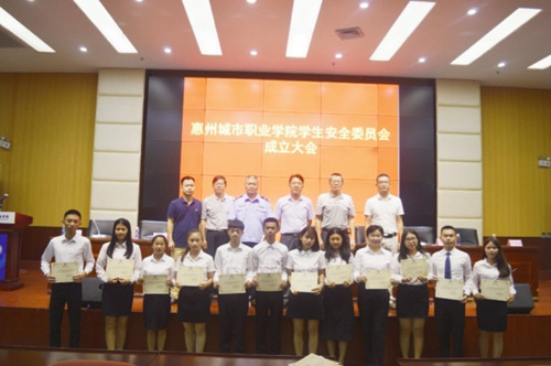 罗忠亮处长宣布学生安全委员会成立,保卫处邓建南副处长宣读了学生安全委员会主席团成员名单,参会领导为安全委员会成员颁发了聘书。