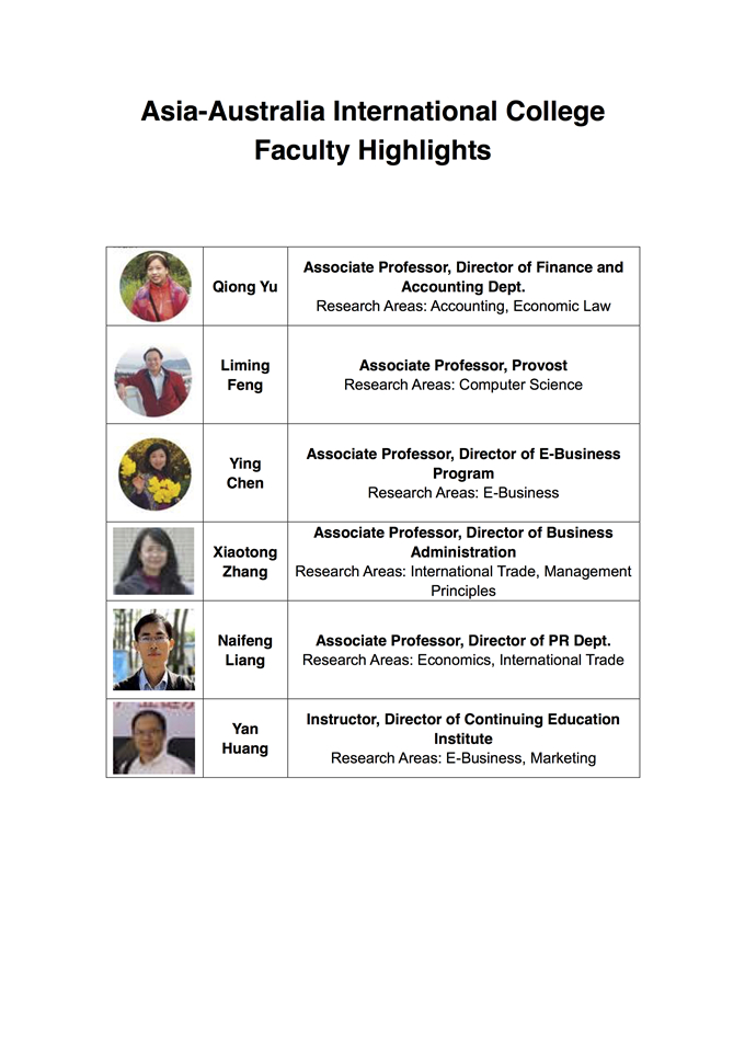 Asia-Australia International College Faculty Highlights