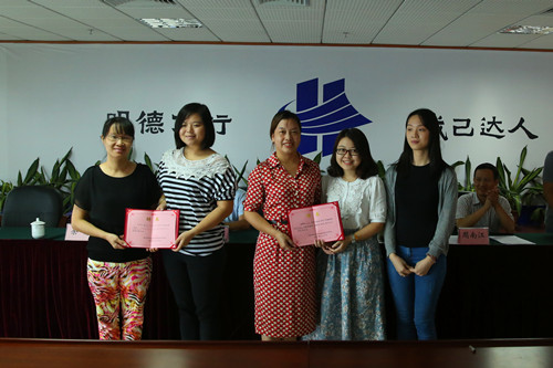 仪式上,每位新教师配备一名相同或相近专业的指导教师和一名有经验的班主任指导班导工作;每名行政教辅人员配备一名业务指导人员。现场还举行了师徒结对受聘仪式。
